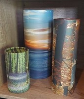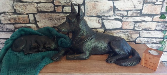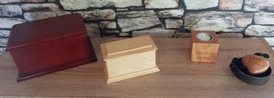 As part of the cremation package, your pet’s ashes will be returned to you in either a scatter tube or a natural bamboo scatter pouch. This is your choice. If you prefer to keep your pet’s ashes in the longer term, we are able to offer you a wide choice of other casks, urns, tribute boxes, sleeping cats, dog caskets or a photo frame. These come at an extra cost which we will be happy to talk with you about to ensure this part of the process is exactly what you want. Here are some examples. Please also see our Celebrate your pet pages.